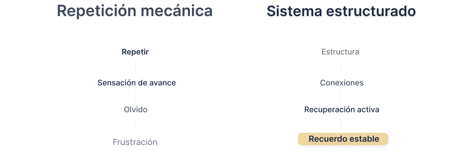 Repetir puede ayudar, pero no garantiza un recuerdo permanente y recuperable.